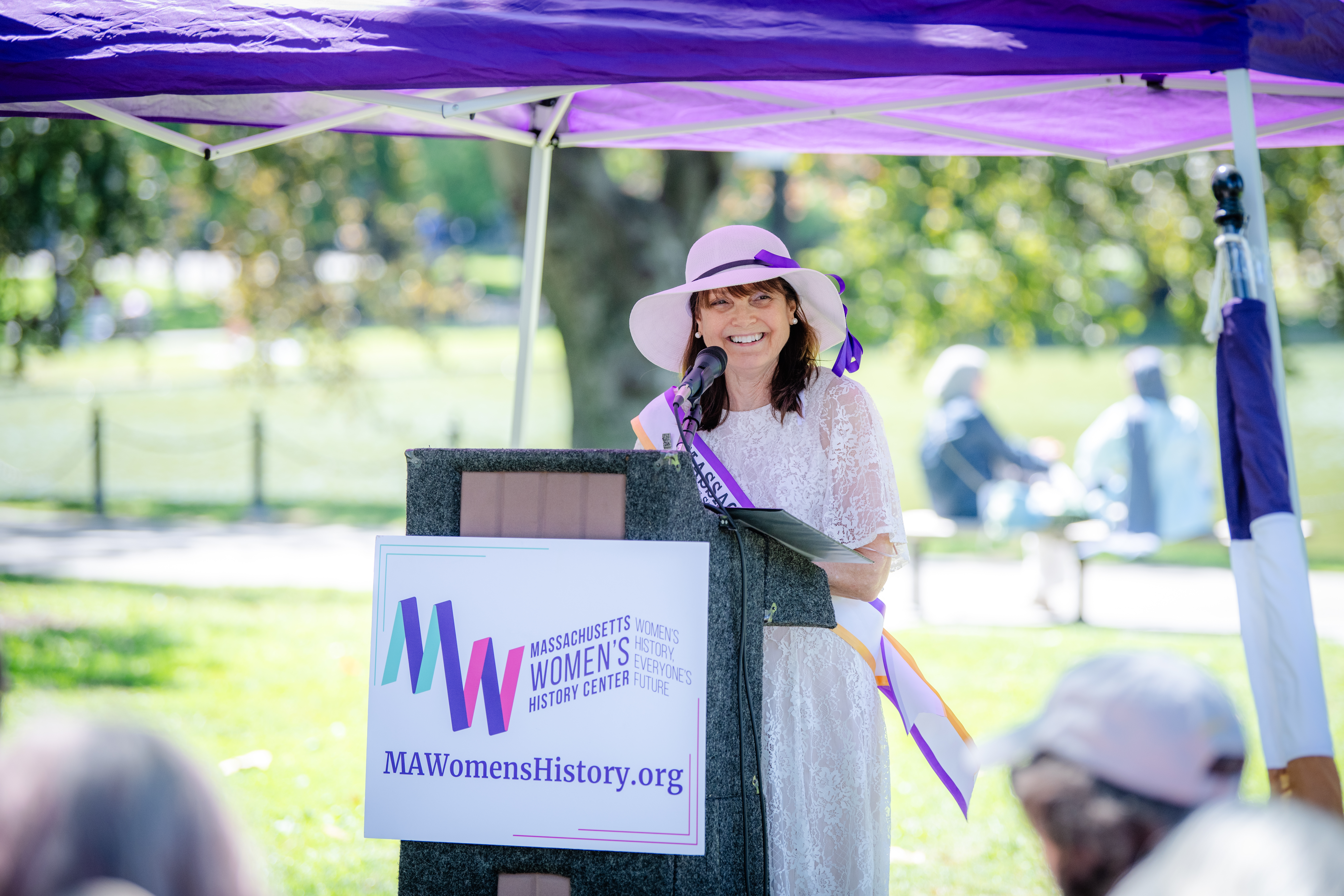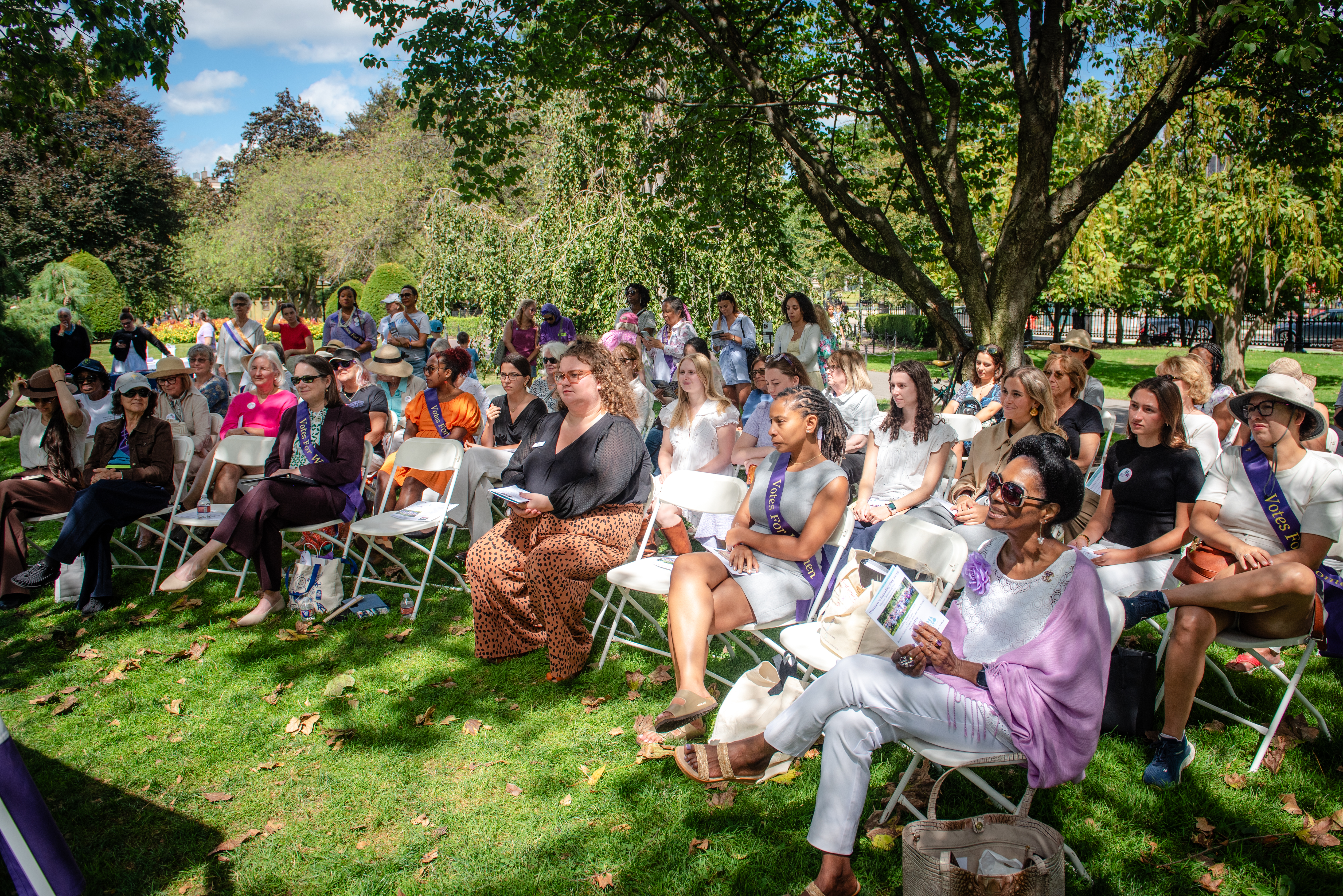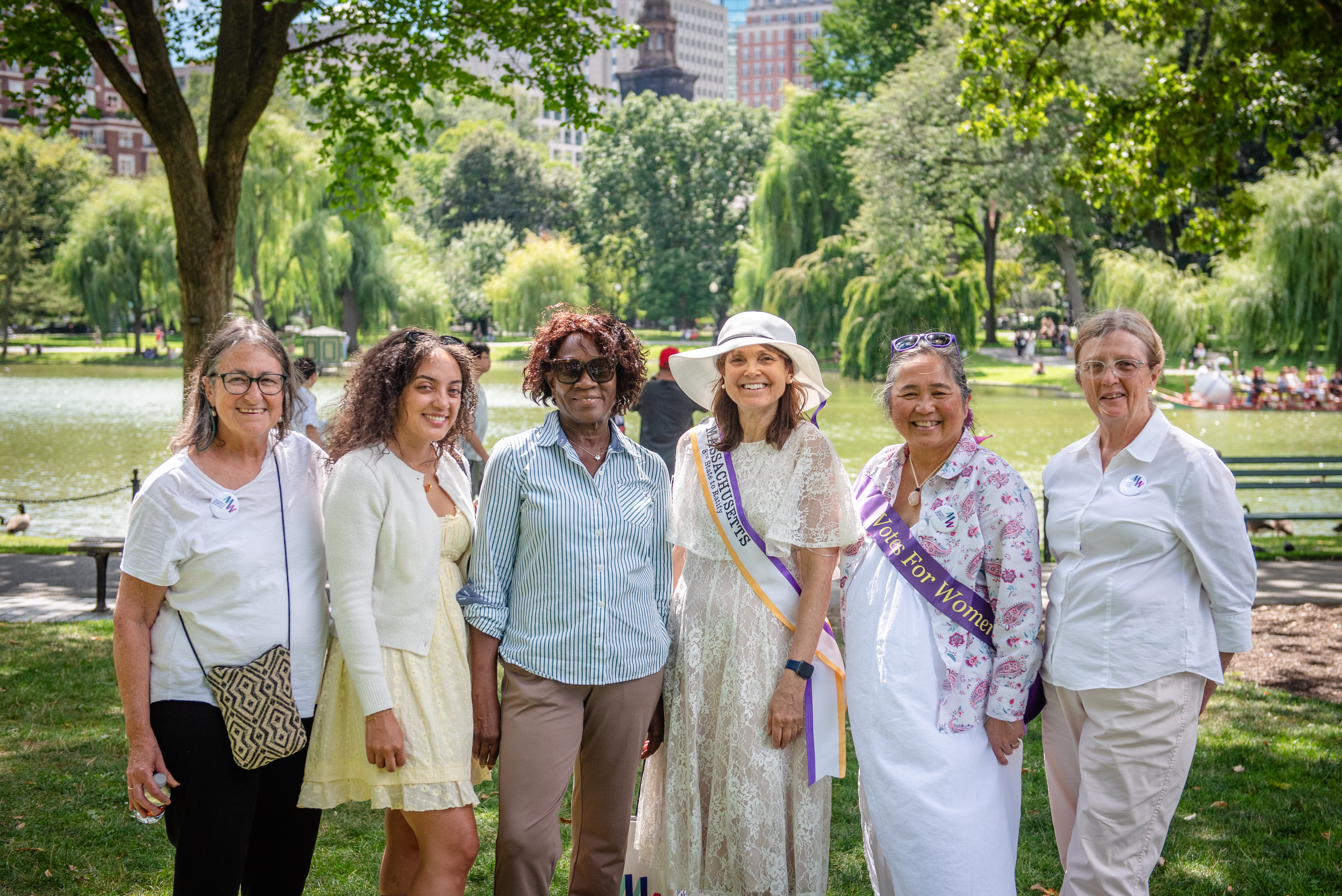 Since 2011, the Massachusetts Women’s History Center (formerly Suffrage100MA) has been commemorating Women’s Equality in the Public Garden near the Swan Boats! Thanks to N.Y. Congresswoman Bella Abzug (1920 - 1998), Congress designated August 26th as “Women’s Equality Day” to commemorate the day the 19th Amendment was added to the Constitution, which prohibits denying U.S. citizens the right to vote on the basis of sex. While the 19th Amendment does not discriminate, other laws prevented many Americans from voting, including Black, Native American, and Asian American communities, who would not receive enfranchisement until after the Voting Rights Act of 1965 and other crucial legal victories.