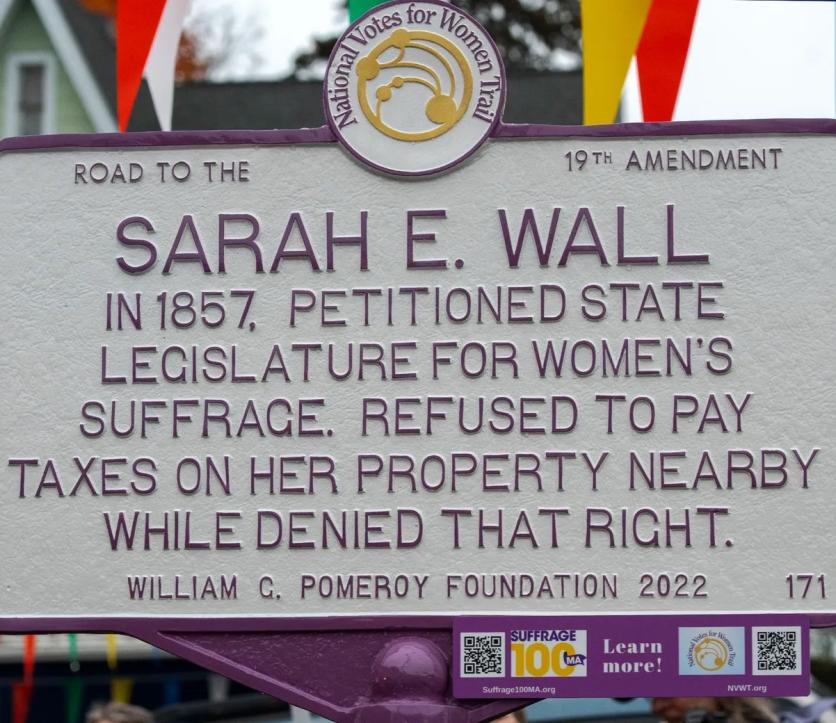 “Sarah E. Wall Women’s Suffrage Marker Unveiling in Worcester.” Massachusetts Women’s History Center. October 24, 2022. Accessed May 2025.